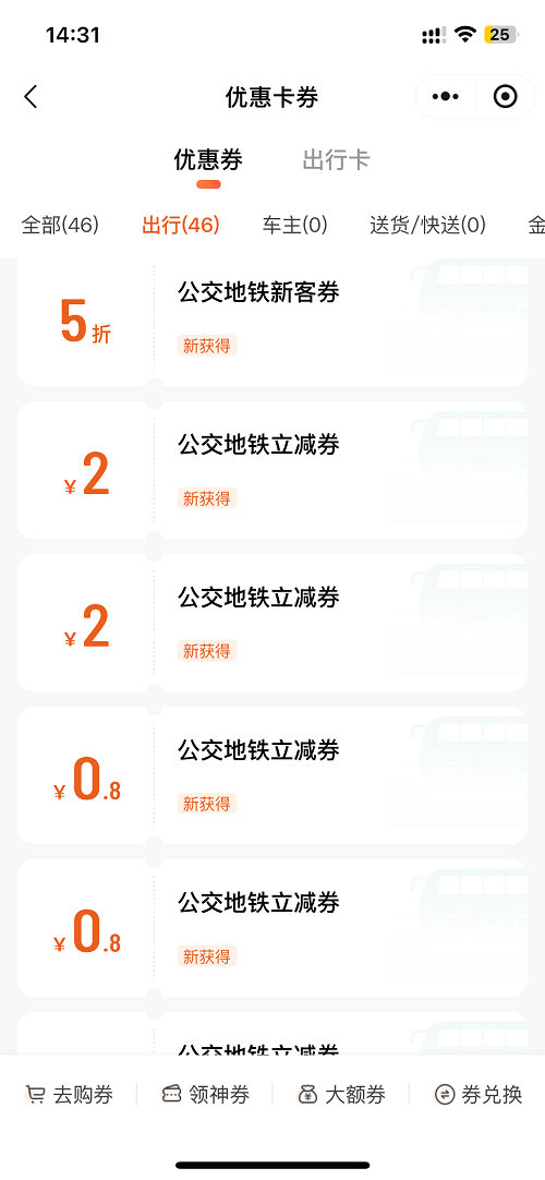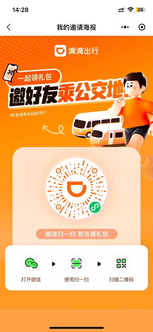 滴滴出行,01元抢36元公交地铁券 暂无评论 时间:2025年07月14日,作者:share1223.com 微信扫码,进入小程序开通支付即可。 !本站的分享来源网络,版权属于原作者。严禁用于任何商业目的,仅供学习参考,如有侵权联系邮箱。